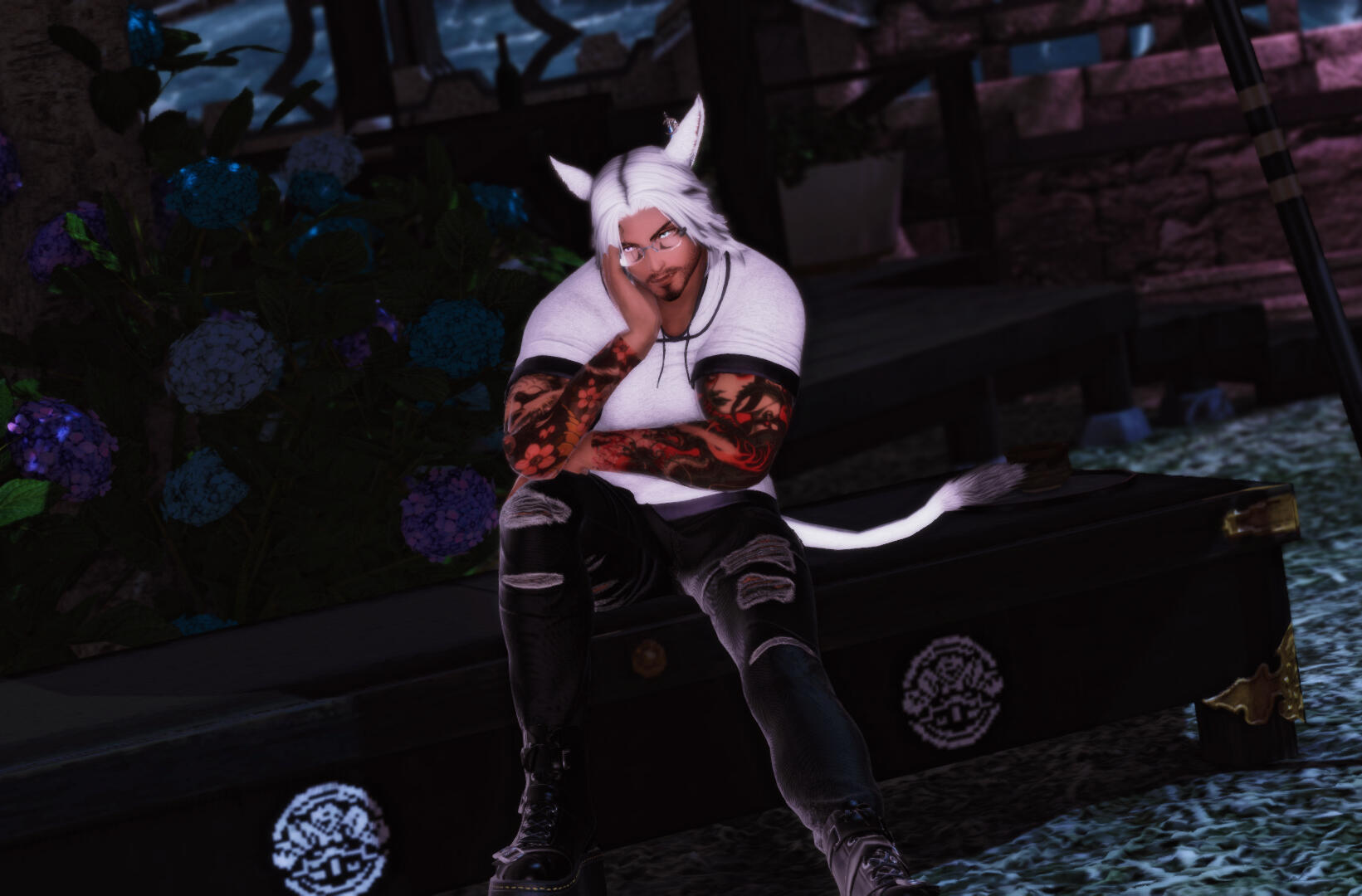 ֎ Looking for a drinking buddy? U'kyo's always up for a good time! Share a drink, swap stories, and unleash your inner adventurer together. Who knows, he might even spill some wild tales from his past.֎ Need a job? SIO, Kyo's Free Company, might be hiring! Mercenaries, adventurers, treasure hunters – all are welcome (as long as the work's exciting!).֎ Seafarer with stories? U'kyo, a desert dweller at heart, is oddly fascinated by the ocean. He's been chilling in Costa Del Sol, soaking up the sun and pondering life's mysteries. Come share your seafaring tales and maybe you'll spark his wanderlust!֎ Feeling lucky? U'kyo's tribe frowns on the Gold Saucer, built on their sacred land. But hey, the whispers of glorious wins are tempting! Maybe today's the day for a little "gambling research" trip...֎ Need a tank? This eager adventurer might be new to the frontline, but he's a fast learner! He's always looking to improve and support the team, even if it means the occasional "pulled too many" groan from the healer.֎ Want some stunning photos? U'kyo just opened a brand new photography studio in the Lavender Beds! Headshots, landscapes, group pics – whatever your vision, he can capture it.֎ Bonus: (Keep this one subtle, wink wink) U'kyo might also be interested in finding some... submissive companions to join him on his adventures. But that's a story for another time...